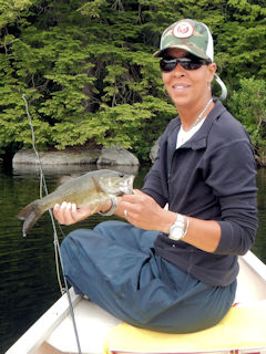 We’ve fished this lake for a few years now and haven’t yet tapped into a smallmouth like the big boys of Lake Winnipesaukee. Nonetheless, Granny stuck four of them about this size.