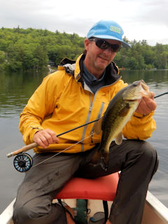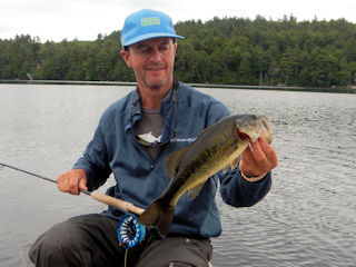 The largemouth seemed to enjoy the weather conditions. In short time we landed several small bass and I landed this respectable NH largie. This fish took a dark green Ben Byng popper.