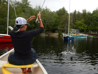When we left Idaho a few days ago the forecast for the Lakes Region of New Hampshire was hot and sunny every day of our vacation. But today was day three and already the sunshine was overtaken by clouds and rain. Granny and I were smart enough to get out early this morning before things reached their worst.