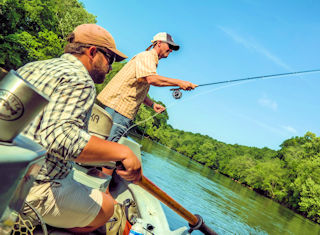 We caught a bunch of redeye, spotted bass and the occasional bluegill. We hoped to set up on some smallmouth buffalo but we never got the chance. We even saw what Conner thought was a banded queen snake. The colorful reptile leapt off the bank and swam along with us but we never got close enough for a good look.