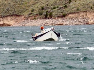 At 1 PM a front blew in. Wind funneled down the canyon lake and gusts blew up to 45 MPH. It wasn’t only impossible to hold a boat in position for casting, it was flat out dangerous. Get your drift boat sideways in a gust like that and one of the three foot white capped waves could easily dump you. Did I mention it poured for an hour also?
