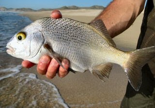 Sam Vigneri and I are still in Baja. Our attempt to catch a marlin ended yesterday and today we rested up by sleeping in until about 7am. Once awake, we headed to Todos Santos to have breakfast with Grant Hartman and his wife Giselle. After the superb Mexican meal, they spent the day relaxing while Sammy and I opted to chuck flies in the Pacific surf.
