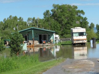 even the smallest of creeks. Check out trail creek as it passes through Victor. Also, we’ve had a few houses and roads flooded out, and these pics really tell the story.Does this mean we are screwed in our fishing? Absolutely not-you just need to be creative. I’ll be headed back to the Legacy Ranch on Wednesday with Tate Jarry and Perk Perkins. Click on the ranch just incase you don’t remember how great that trip was back in May. We will fish the lakes and they