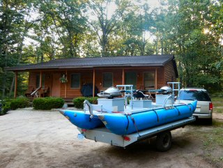 After giving my full day seminar yesterday down in South Bend, Indiana, Terry Wittorp and I and seven friends drove straight north to Wellston, Michigan.  We spent last night here in the comfy cabins of D Loop Outfitters and today we floated on the Manistee River.