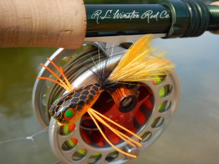 Along with all the goods for yesterday’s seminar I packed my Winston Boron III Plus 5- and 6-weight rods along with a small box of smallie flies.  Although a Clouser minnow nearly guarantees a smallmouth bass under any conditions, I couldn’t wait to tie on a Ben Byng hard bodied popper.