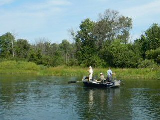 We had huge expectations but fishing started slow.  I racked up three tiny largemouth bass (unusual on this stretch) and between all three boats only about three less than average sized smallmouths caught before noon.  It was a head scratcher trying to crack the code with different colored poppers and streamers.  I stuck to my druthers and kept my same popper popping.