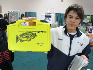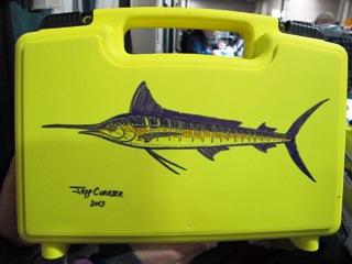 I had a great weekend giving presentations on saltwater fly fishing and fly fishing for carp. I also did sharpie fish art on more than a dozen fly boxes. I drew everything from brown trout to striped marlin and many more – all this while visiting and yakking it up with friends. Many folks brought their own boxes like Skyler pictured here with a largemouth bass about to eat his favorite popper. It was awesome but no lie – I’m exhausted.