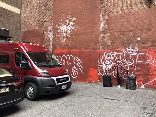 Despite being exhausted, yesterday was an early departure from NJ in the Ruby Van into the heart of Philadelphia. Yes – Central Philadelphia! I pulled off my most challenging city driving in the van followed by a 39-point-turn in order to fit the van into a city parking lot. The three hour parking cost $40!!!