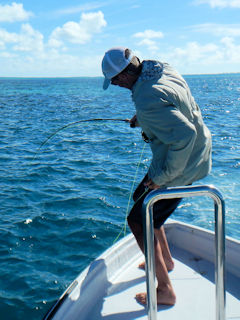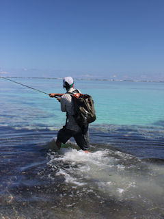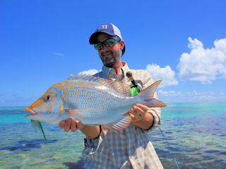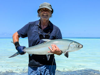 Skip Brittenham went alone with my guide of yesterday, Matthieu Cosson.  They went straight for the milkfish.  Skip had seven take his fly, fought two to the boat and landed one.  Despite my long desire to catch one of these remarkable fish, my luck with them hasn’t been good.  This is an incredible accomplishment and I am stoked for Skip!