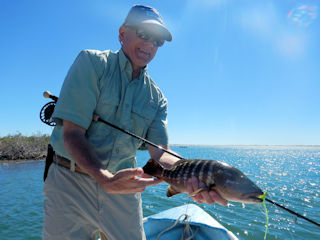 Though we didn’t catch any big fish, any day where your line stays tight most of the day is a ton of fun.  Furthermore, I not only added my first of the Pacific snook to my species list, I knocked off second species today, the sheepshead grunt.  And the sheepshead grunt is a fish I was totally unaware existed.