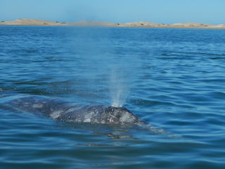 We literally hopped in Jose’s boat at the hotel.  Right there on the street.  Then Jose drove to the bay and launched.  We never moved a muscle.  Soon we were on our way and within minutes surrounded by gray whales.  Its whale watching season on the Pacific side of Baja and this big female had a baby near.