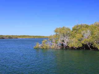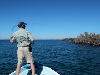 After viewing several whales up so close we could’ve touched them, we motored to the north end of the bay.  The area more resembles a Caribbean lagoon surrounded by mangroves.  I fished my 9-weight with a Sonar 300-grain and the usual prospecting fly for saltwater, a size 2/0 chartreuse and white Clouser minnow.