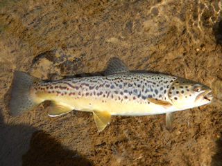 I fished my flying ant all afternoon yesterday and it was conveniently ready to float again today.  The first uniquely marked brown trout I cast too was more than happy to eat it.  The day started remarkable with trout after trout falling for the terrestrial.