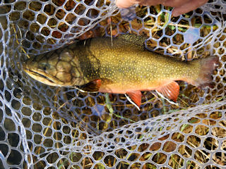 The nice-looking char startled me at first.  I dropped to my knees as if he didn’t see me.  But my presence was long announced.  I tossed my ant pattern regardless and the trout gave me that look “are you joking dude?”.  That’s when I made a rare “Currier” fly switch to a Vladi Trzebunia Polish nymph.  It’s a dirty deed on a spring creek when the dries are on but this brookie had to be caught.  Three casts with the heavy caddis larvae and soon Joe was netting my brookie.