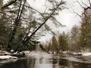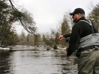 As badly as I wanted to jump up and chuck some streamers, Tommy insisted I stay put. He had a place he wanted to start. The river is small and narrow and covered by a canopy of trees. Of course in early March these trees are leafless and snow covered, nonetheless any hasty cast would tangle you up.