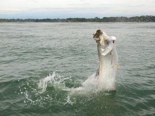 Dalmen estimated Robs tarpon at 140lbs. They always look bigger but then again, 140lbs is a huge animal. We released the spectacular fish still full of spite then went back to work.