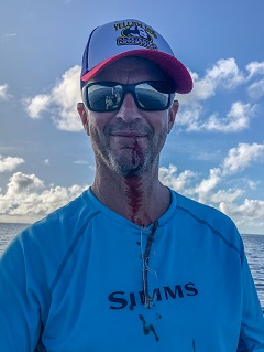 Ten minutes of hitting these milkies and I’d made no progress. My lip was aching and the blood dripping down my shirt was annoying. I had to clean up so I passed my turn on to Randy. When I did so, I knocked my readers off my shirt and into the ocean. I tried to snag them on my fly line but they were goners. That is until Wes dove overboard and retrieved them. I was having one hell of a day!