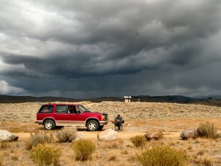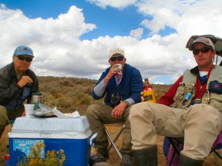 By 1 the weather conditions were miserable so we angled the cars in order to create a wind block and kicked back to eat and enjoy some tasty beverages. You never go hungry when fishing with Dede and Barb. We had everything from hot soup and coffee, chicken, hot dogs, homemade chocolate chip cookies and the list goes on. We are pros; if the fishing stinks we make up for it in food.