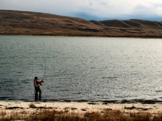 We never saw blue sky again but at around 5 the drizzle and wind subsided. There were some fish jumping around within casting distance of shore so we began trying for them from the beach. These weren’t so much fish eating off the surface rises but more jumping for joy splashes that are common with prespawning brown and brook trout. We covered the rises with leeches and streamers the best we could in hopes we could entice a take.