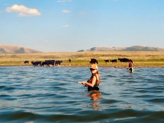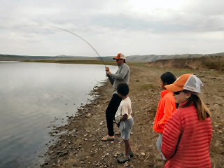 It was the usual, a beautiful August day.  There was hardly a cloud in the sky.  The temperatures hovered in the high 80°s all day.  It was perfect for carp however the past few days must have been windy at Blackfoot Reservoir.  The water was extremely off color and it was impossible to see the fish or even their feeding mud trails.  Our only option was to fish blind and hope.