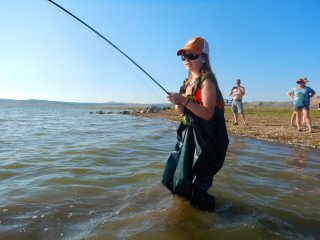 But then, as it always does, it happened.  Who cares if I was the one casting and stripping, the girls were wading by my side when the small carp struck.  I handed the rod to the nearest niece which happened to be Montana.  The fight was on.