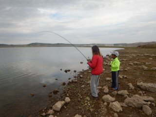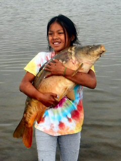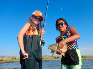 Carping with the fly can be slow and in no time Ely dropped out.  It was just the girls, 10 year old Sierra and 13 year old Montana.  They both have a life history of never giving up when it comes to fishing.  Hours went by without a bite.