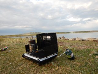 I sprung from the back of our explorer early this morning.  I was surprised to see thick clouds and rain to the south of us.  Knowing my family was leaving after breakfast I prepared some early morning coffee then woke Sierra and Montana for fishing.
