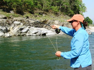 In addition to Jim and Chris we have along another friend, Whitney McDowell, of Bozeman, Montana. I’ve known Whitney for years as she once lived in Jackson, Wyoming and was a frequent visitor to the fly shop I ran. Whitney was always searching the latest hot fishing locations not just around home but also worldwide. Golden mahseer is another fish she’d like to add to her already long list.