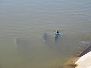 After a little more fishless adventure we ended up on water we knew from last year. It’s a canal near Steve’s house. This canal isn’t one of the most beautiful places in the world to fly fish; however its one of the most interesting. The water body is straight as an arrow and there’s a trail on both sides that you can expect to dodge a bike on your back cast at any time. It’s fascinating to me that we were fishing some manmade cement river in 90° heat with traffic blaring from all directions in a city. Despite the nutty place we were sight fishing olive hoppers to nice size grass carp immediately upon arrival.