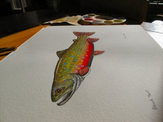 Granny and I planned to wander around Fremont County and wade fish Tuesday. However it rained in Victor much of Monday night and we could only assume river conditions everywhere got worse. So, instead of heading out Tuesday morning, I worked on a brook trout painting all day and we left about 5 PM.