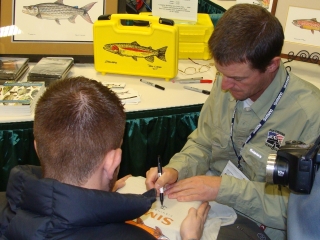 As always I was busy with presentations from PowerPoint to casting demos as well as promoting my artwork, books and the latest DVD’s. Between talks I based myself out of the Anglers Fly Shop of Boise. The owners John and Maja ordered my books and Simms T-shirts with my latest artwork on them and I helped them sell a bunch. When not selling I doctored up some Cliff Fly Boxes for people and visited with them about all aspects of fly fishing. It was really fun weekend.