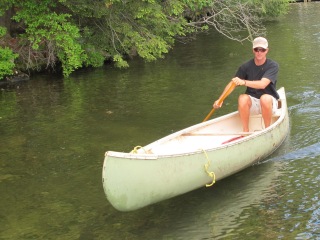 Today time was limited. First thing in order was to walk right in my parent’s house and shock them. Even though its moms birthday surprise, my dad didn’t know I was coming either. After some good visiting I got my NH fishing license and went over to the camp and met up with my sister, Becky, for some fishing. The same old green canoe I grew up paddling was lying in the woods. The old Old Town appeared in rough condition, covered with leaves and moss but only because it sadly doesn’t get used anymore. We dropped it in the water and in a matter of minutes I was back in time.