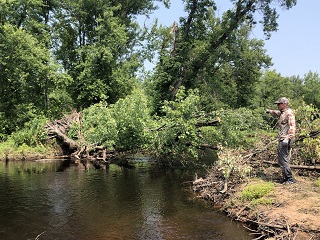 To escape society on a Saturday is an ordeal. The dusty roads and bloodsucking bugs were only part of it. We chose a river almost too small to navigate. We ran into several bad snags that completely blocked passage. We had to portage the raft twice to get around fallen trees. That’s when you truly get annihilated by bugs!