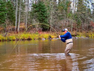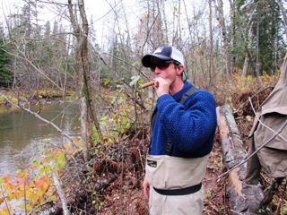 Although the mouth of the Brule River is loaded with Coho salmon, walleye and incoming steelhead, Rick is a fan of moving water.   After a look around we drove back upstream a few miles and found some nice turns in the river.  The water was slightly off color from the drizzle and rain we were experiencing, perfect for fall run steelhead.