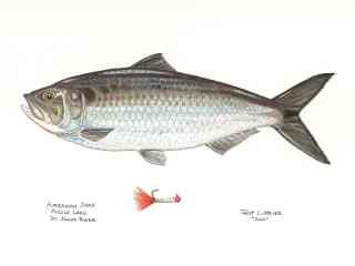 Today is the end of the longest period of no fishing for me since last February. My wild run on various waters the last two months put me way behind in my work from art, organizing my winter schedule and updating my PowerPoints for winter shows. I buckled down however and have my “work” life back on track. Of note, I completed two paintings for longtime customer Dan Beistel. The paintings included a black bass and this American shad, one of the biggest shad I’ve ever seen.