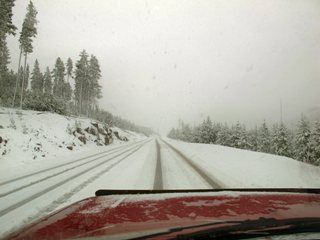 Granny and I slept in the Explorer just outside the North East Park Entrance. We got up at 5:30 and were one of the first cars back down through Lamar Valley. Once again we couldn’t see a darn thing. We were caught in a snow squall and visibility for wildlife was near impossible. We thought about waiting it out but for fear of getting snowed in the Park we started the journey back through the Park and home again.